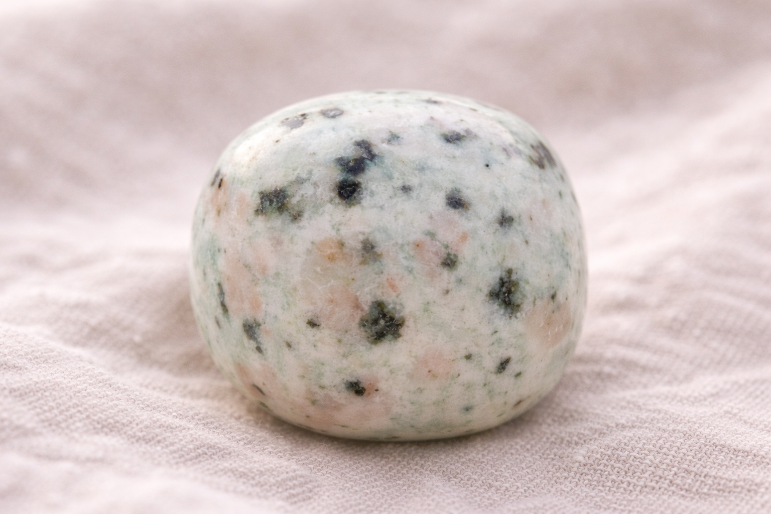 With its soft mint base and natural speckling of black and warm mineral inclusions, this stone feels calming without dulling. It steadies without shutting you down.