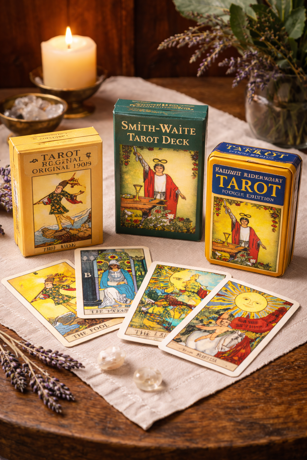 | Options | Smith-Waite – Artist Honored Edition, Pocket Radiant Rider-Waite Tarot, Tarot Original 1909 |